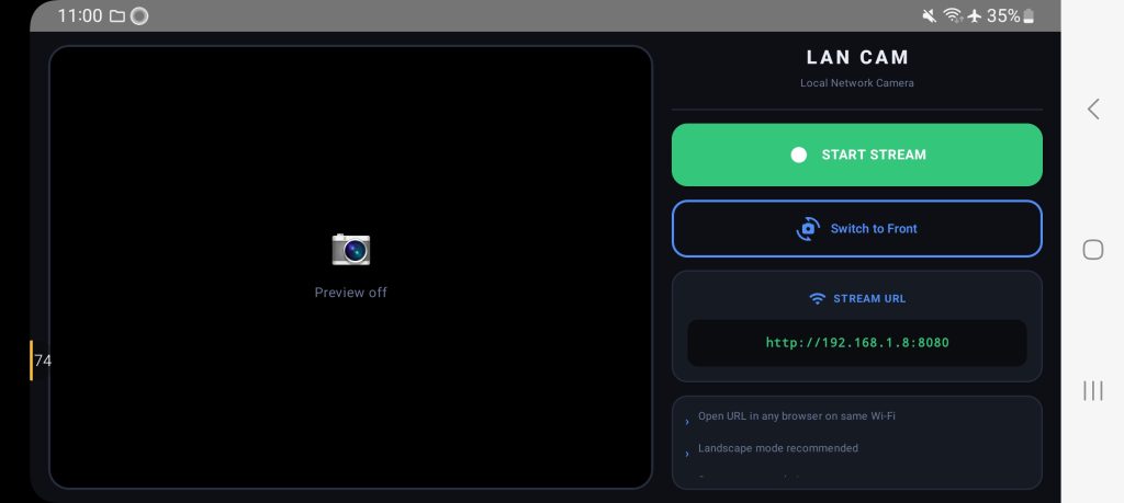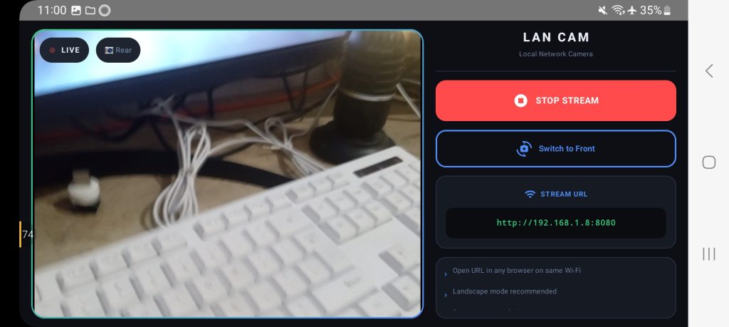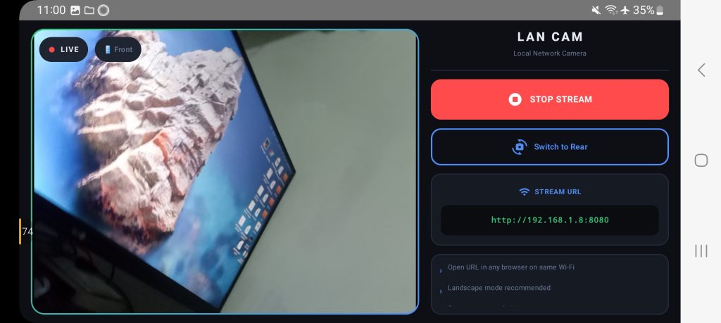 **Why Personal Lan Camera?* Unlike cloud-based apps, this works fully offline in your LAN environment — ensuring low latency, better privacy, and zero internet dependency.